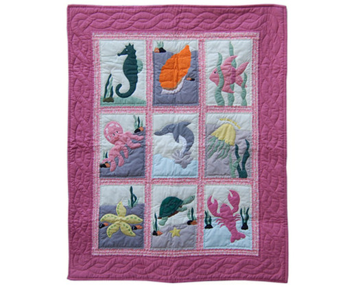 This quilted baby blanket would add a relaxed feeling of tranquility to baby's crib and the nursery. It can also be used as wall hanging to add a Hawaiian island theme to baby's room. Make learning about sea creatures fun with these exotic themes!