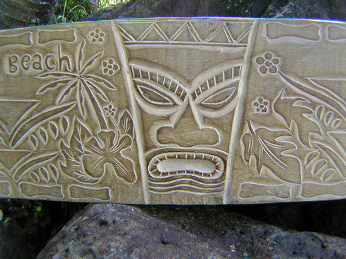 HAWAIIAN TIKI BEACH SCENE Wooden Relief